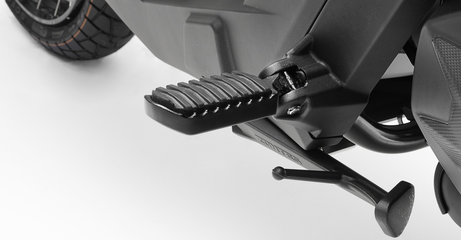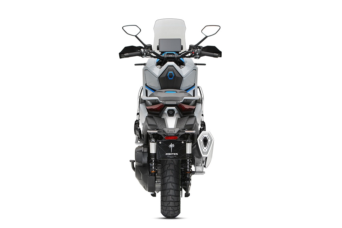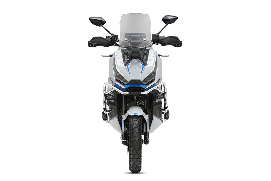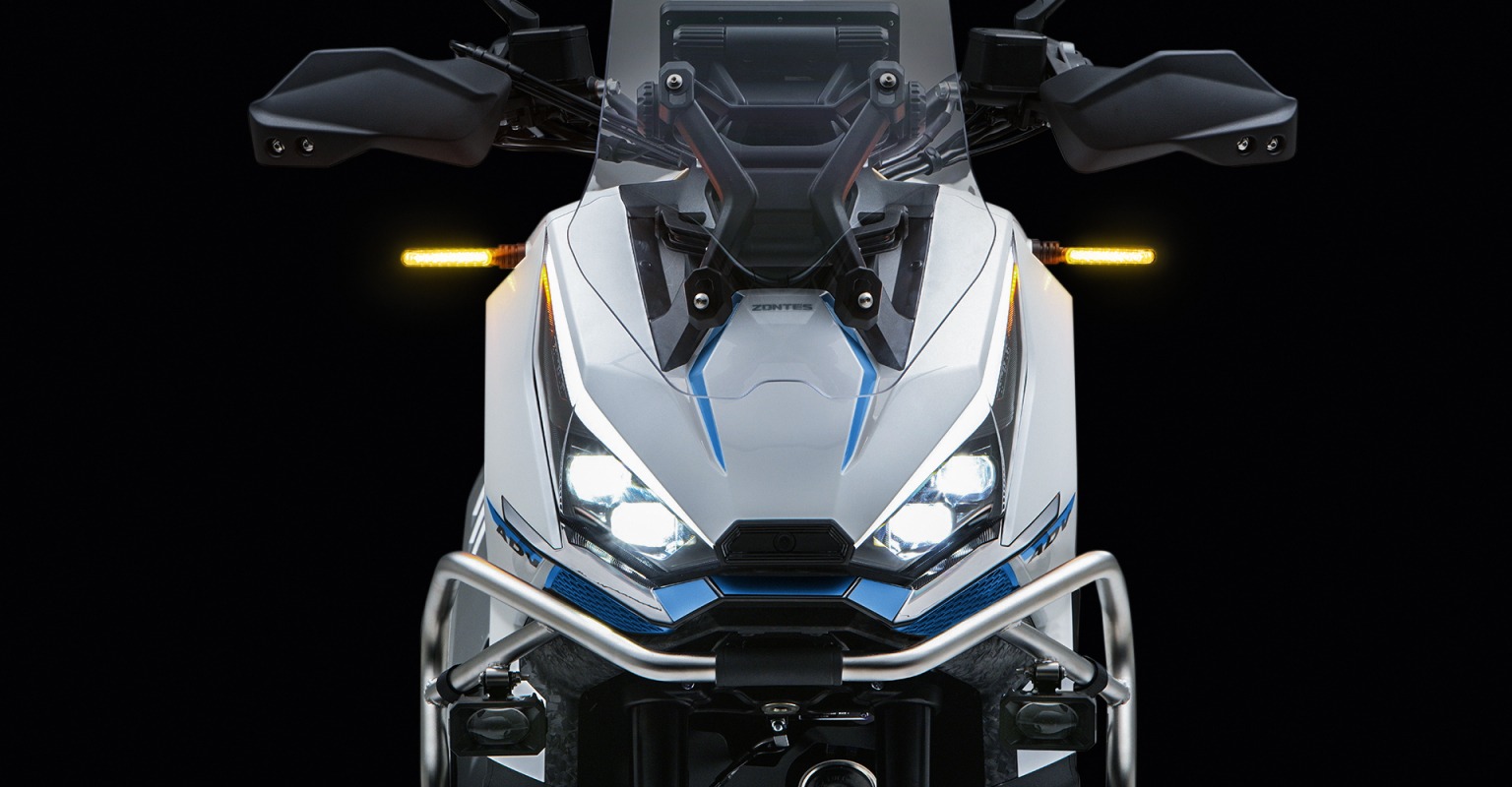 Faretti a LED aggiuntivi e protezione laterali, adatte agli urti più casuali, sono di serie sulla ZT368-G.. Grazie a questi dettagli, questo scooter conferma il suo puro stile Adventure.